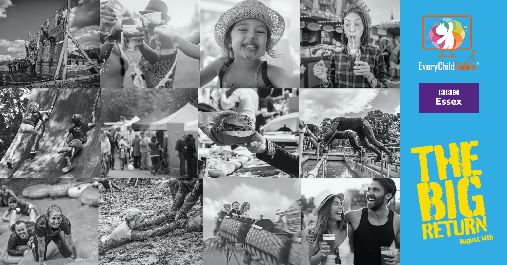 Every Child Online and BBC Essex are hosting The BIG Return - Brentwood Essex. 14th August 2021 This is going to be the family event of the year - In aid of Every Child Online. To celebrate the easing of lockdown and all the support our community has given to our schools and Every Child Online. We have organised the event of the year, an event for all the family. The Big Return • A return to family fun • A return to enjoying outdoors • A return to live music • A return to street food • A return to beer tents • A return to running in the mud • A return to climbing, swinging and sliding Join us at The Big Return and raise money for Every Child Online. Join us on Saturday, August 14th. The BIG Return starts with a sponsored obstacle run - sponsor forms can be downloaded on our event site www.thebigreturn.co.uk. ## Running ticket options below include Free Entry to the after-run Village Celebrations, with live bands, singers, food and drinks stalls, rides, local businesses and lots of fun entertainment for kids. You'll also receive a Free runners medal and Free runners T-shirt. ## ## Early Bird Race Ticket Discount Until June 16th ## 15% off the total race ticket price use voucher code TBR2021 Ticket Options: 1. The BIG Forest Run - A 90min, Muddy, Forest Obstacle Run for Kids 6 to 12 @ £25.00 https://thebigreturn.co.uk/the-big-forest-run/ 2. The BIG Forest Run - A 90min, Muddy, Forest Obstacle Run for 13 and parents/guardians of child runners @ £35.00 3. The BIG 5k Run - Very Muddy, Very Wet Obstacle Course for Adults and ages 13 @£45.00 https://thebigreturn.co.uk/the-big-5k-run/ 4. Village Celebrations – Food, Drink, Music, Rides Stalls and Fun for all the family, free to runners - @£10 for 16 adult ticket and £5 child ticket (non-runners) Under three go Free https://thebigreturn.co.uk/the-village-celebrations-2/ ## Early Bird Race Ticket Discount Until June 16th ## 15% off the total race ticket price use voucher code TBR2021 Your race ticket provides you with a free pass to enter the after race Village Celebrations!! For those not running, separate tickets are available for the Village Celebration. Village Celebration tickets can only be purchased with a running ticket. Village Tickets Only @ £10.00 per adult and £5.00 for under 16yrs. Under 3yrs can enter for free. Village tickets only will not allow you to participate in the Obstacle runs or spectate during the race. Toilet and wash down facilities are provided, remember to bring a change of clothes, changing room facilities are also provided. So, get changed and join the Village Celebrations for food and drink stalls, bands, kids rides, and lots more. visit our site for more details www.thebigreturn.co.uk Hurry, tell your friends, family and colleagues. It is going to be a fantastic day for all the family. Tickets are limited